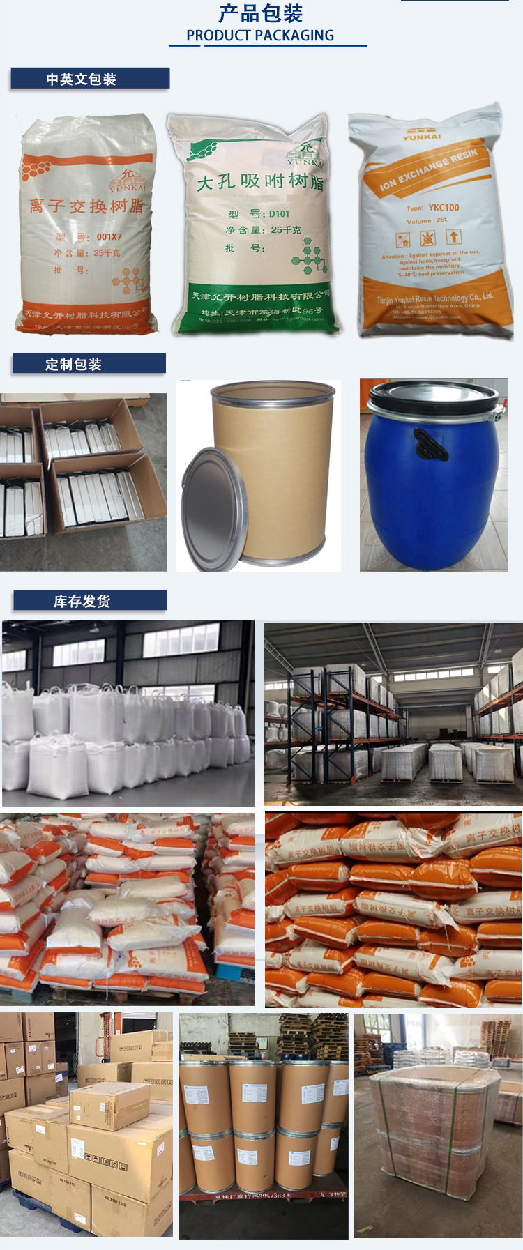 Tianjin Yunkai Resin Technology Co., Ltd. is an experienced resin manufacturer integrating production, research and development, sales and service. It is one of the earliest manufacturers of ion exchange resin and macroporous adsorption resin in China. It has many years of experience in resin research and development and manufacturing, and has established close cooperation with many domestic universities, with strong technical force. We have a modern production base, advanced resin production equipment and a production team with rich technical experience. In the production process, various standards shall be strictly followed.